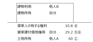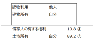 | ④ | 同上借家人の有する権利 | 第三者 | 第三者 | 自分 | 借地権価額*借家権割合*賃借割合 | 10.80 | 31(1) | ||